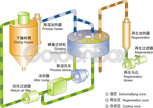 GBF Series Runner Dehumidifying Dryer is mainly dehumidified by the structure of runner type molecular sieve. It has highly efficient continuous absorbent capacity. The working structure is cooled by absorbing water and closed loop which can provide -40℃ dry dew